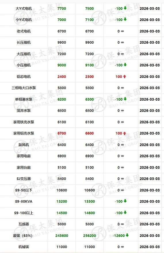 ****年*月**日江西保太有色金属集团有限公司电动机,变压器类报价