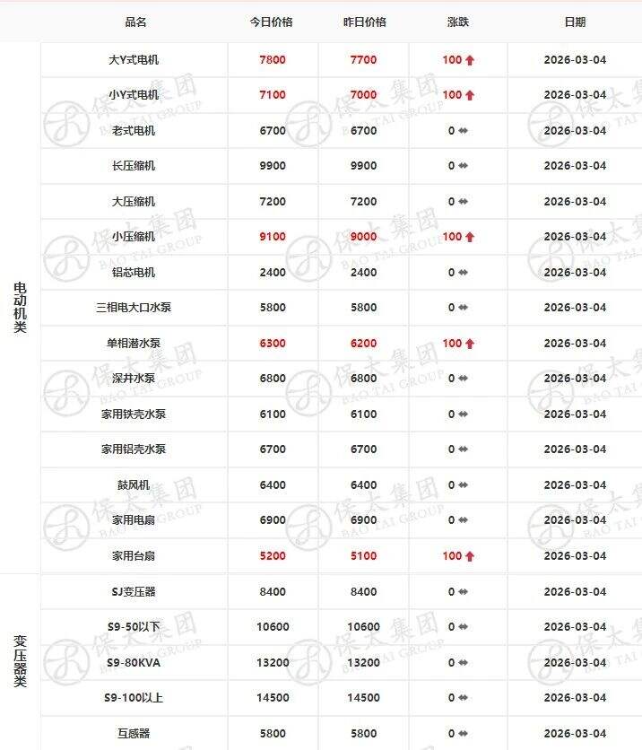 ****年*月*日江西保太有色金属集团有限公司电动机,变压器类报价