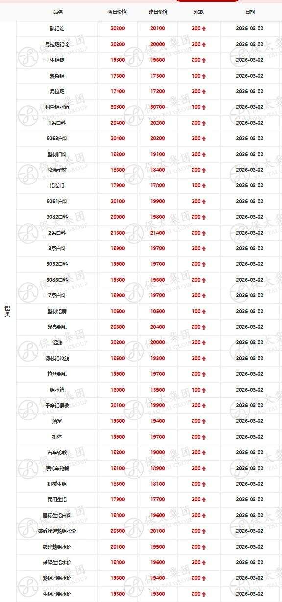 ****年*月*日江西保太有色金属集团有限公司废铝报价