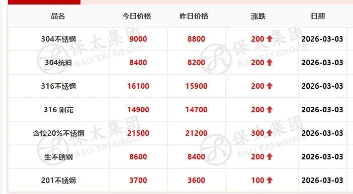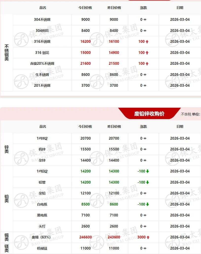 ****年*月*日江西保太有色金属集团有限公司不锈钢报价