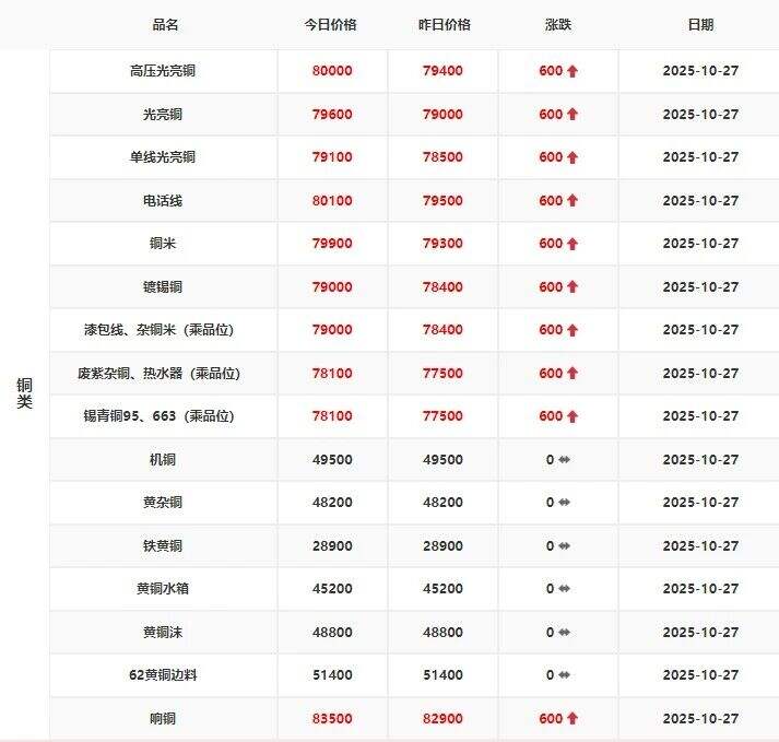 ****年**月**日江西保太有色金属集团有限公司废铜报价