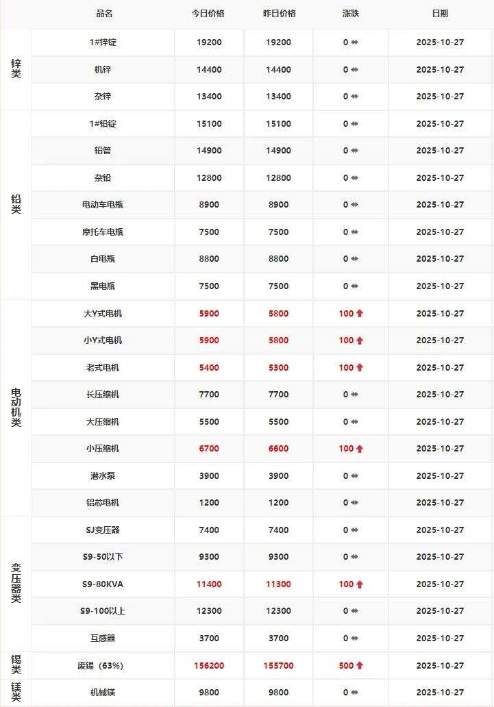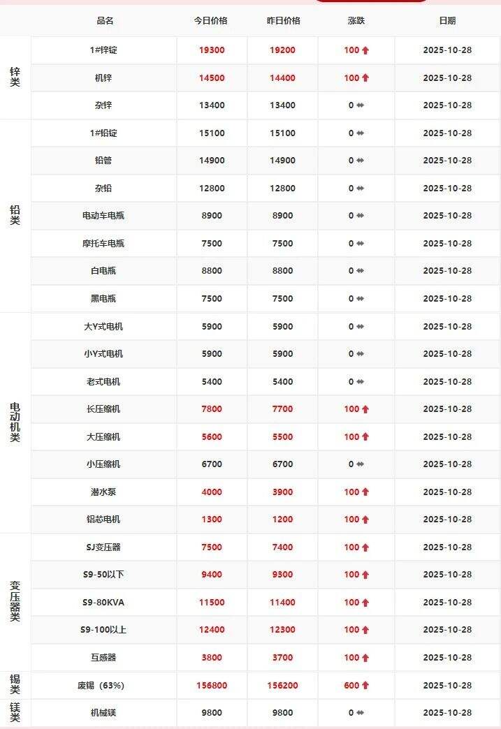 ****年**月**日江西保太有色金属集团有限公司铅锌、电机报价