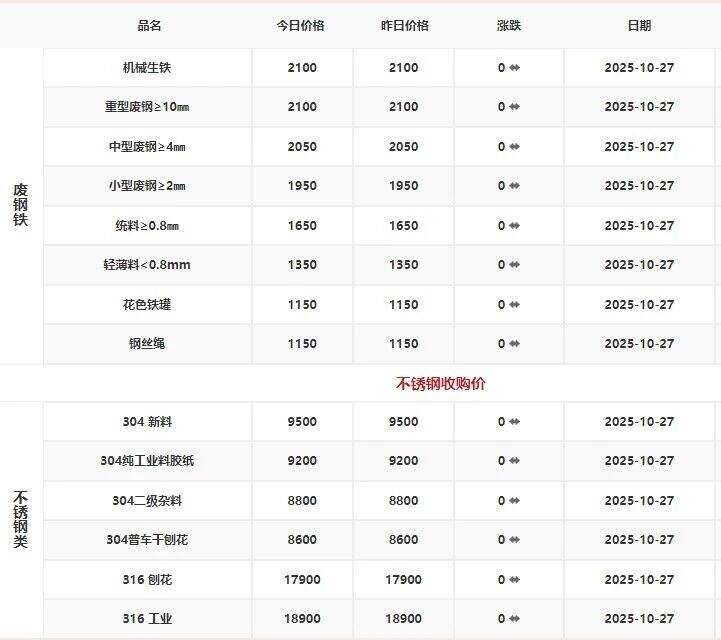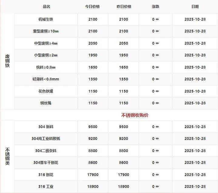 ****年**月**日江西保太有色金属集团有限公司废铁、不锈钢报价