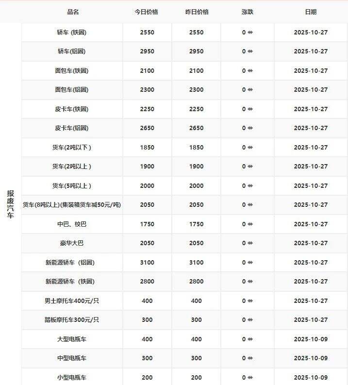 公司货场汽车壳价格上调**元/吨。