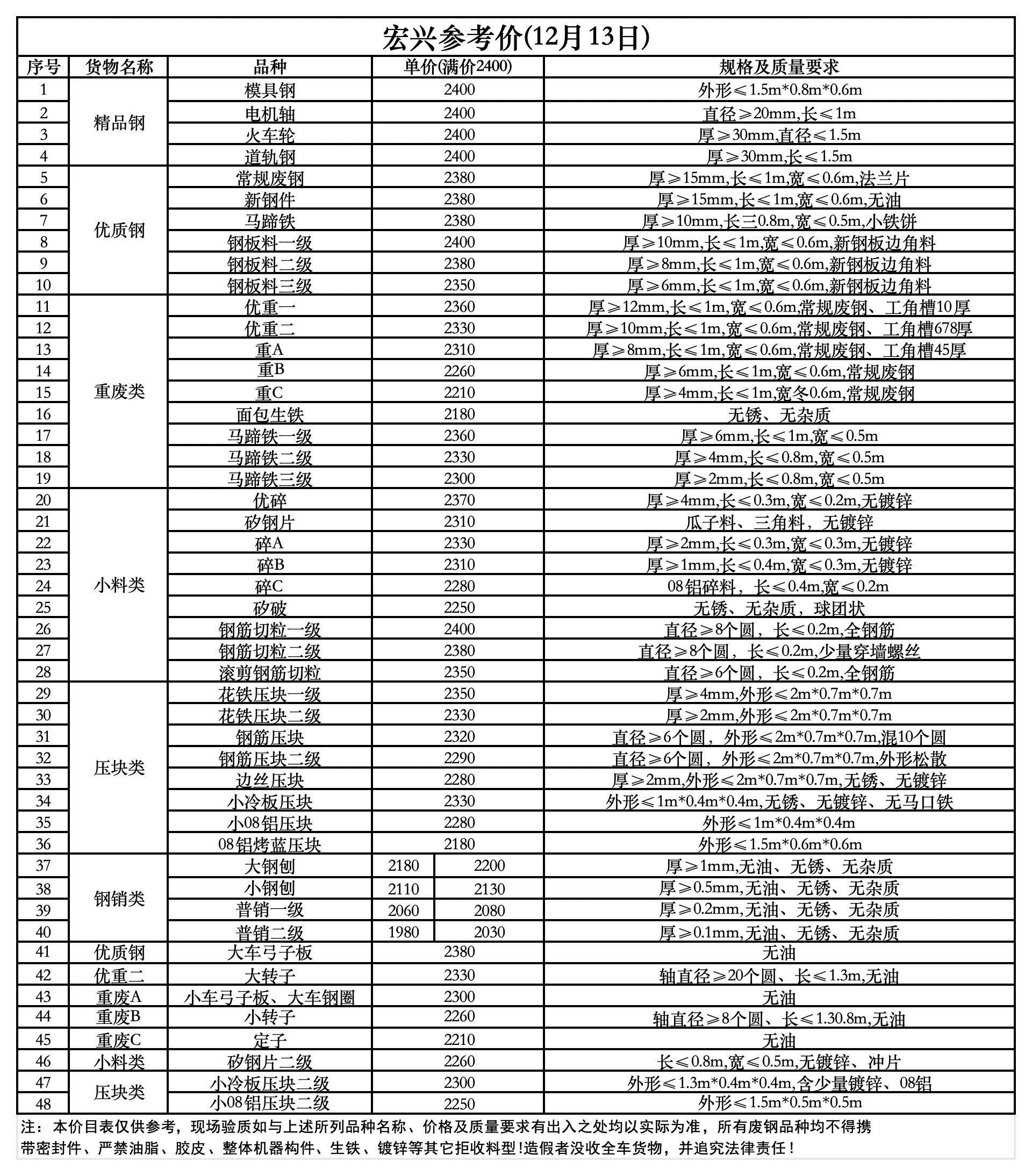 特一级破碎料****,一级-破碎料****,*-*厚废钢****,*-*厚废钢****,*-*厚废钢****,新镀锌,冷板小料****-****