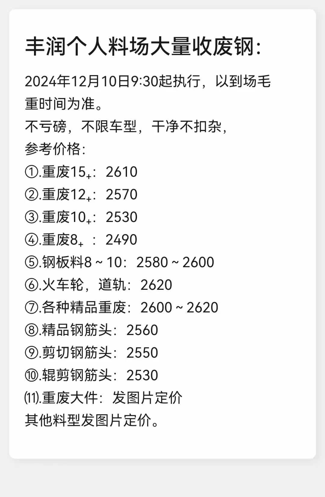 河北唐山古冶区华赢基地废钢采购通知:****年**月**日**:**起,所有料型下调**元,详见价目表。欢迎新老客户洽谈、合作!