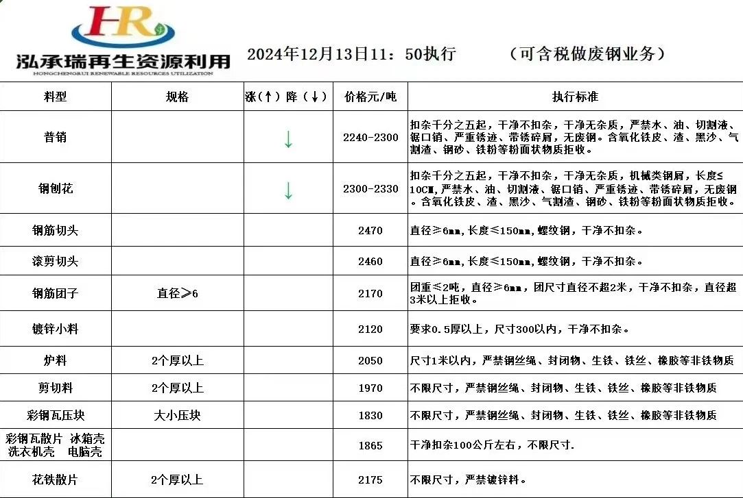 古冶区华赢基地废钢采购通知:****年**月**日**:**起,部分料型调整,可镀锌混装,详见价目表。欢迎新老客户洽谈、合作!