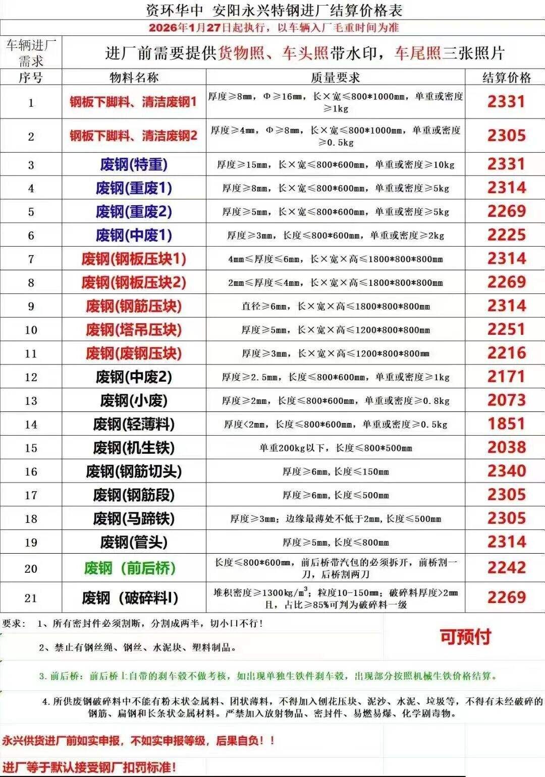 *月**日河南安阳亚新通知:**日*点起,废钢所有料型上调**-**