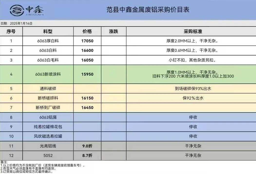 河南濮阳范县中鑫金属制品,*日**今日废铝报价,