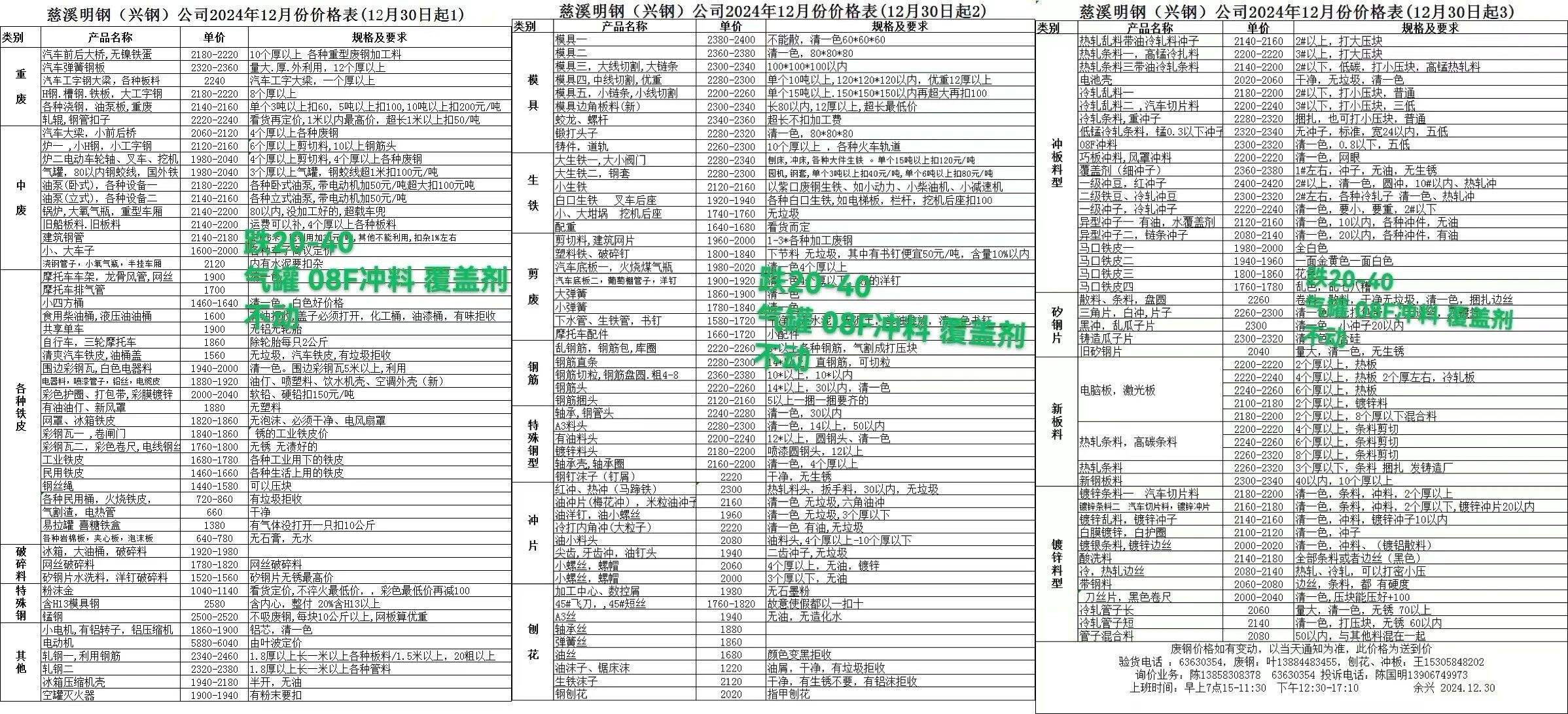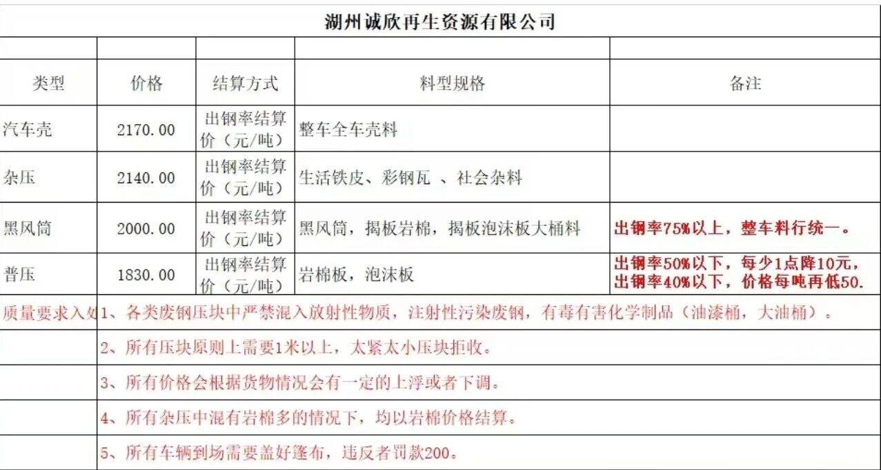 因税改,**月**日湖州诚欣再生资源有限公司报价调整:所有料型下调**.