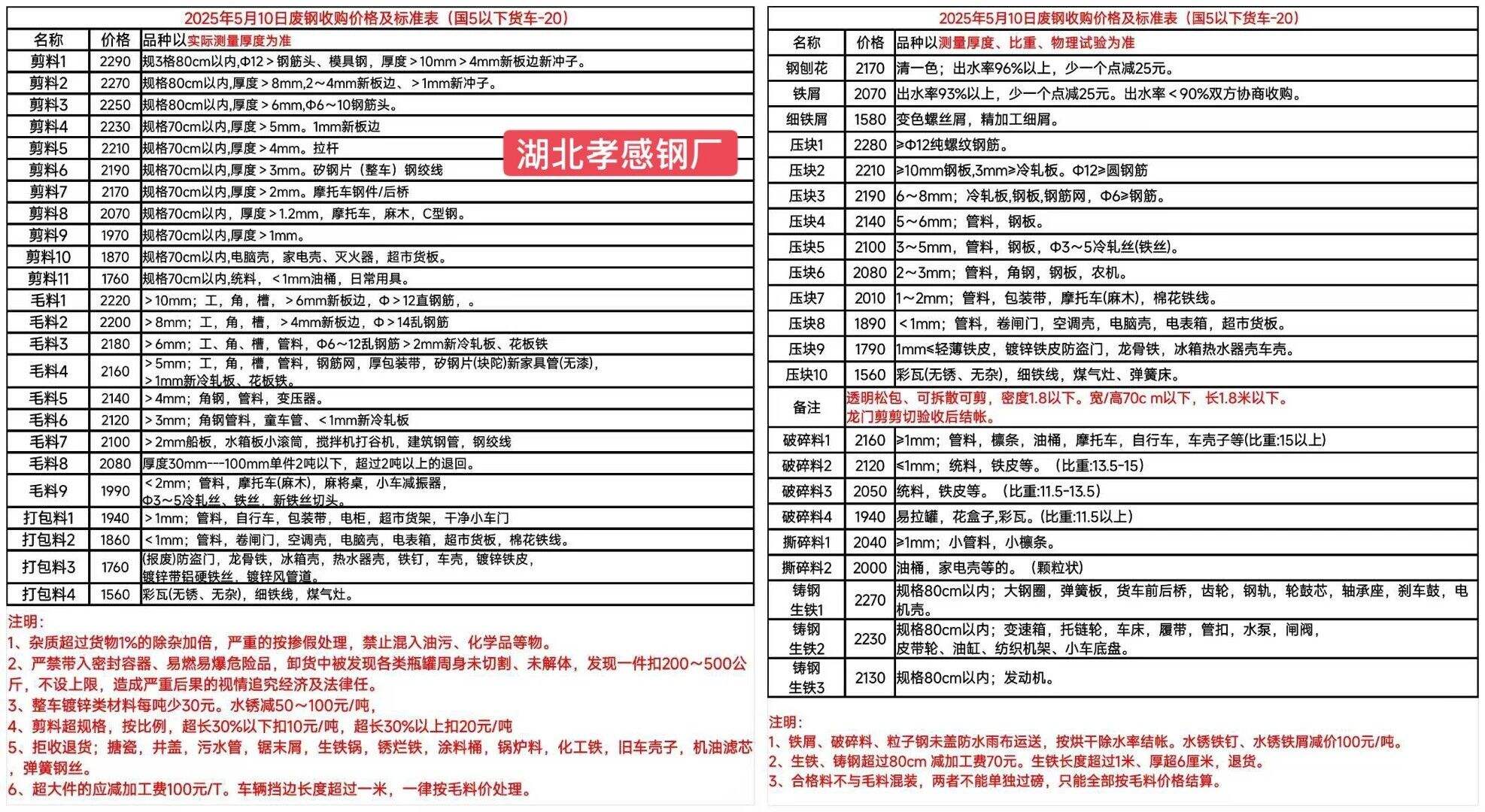 剪切料二****,剪切料三****,加工毛料一****,加工毛料二****,打包料****-****,铸钢生铁****-****