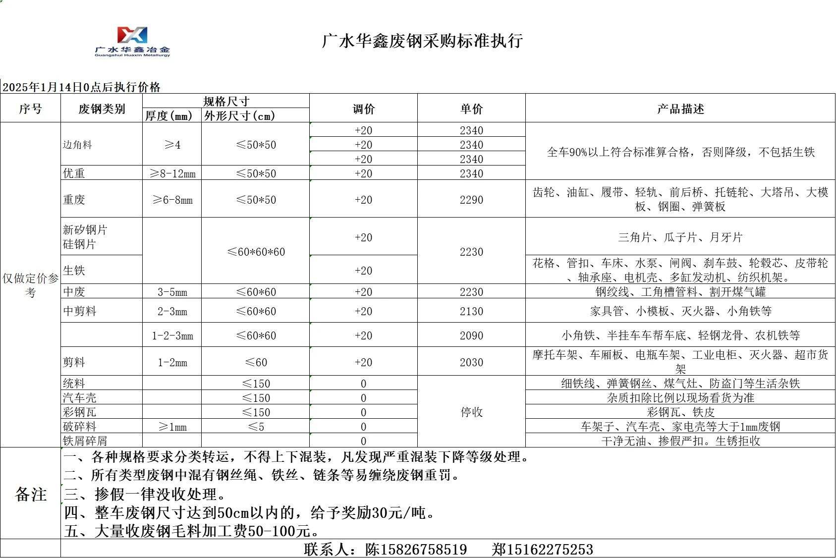 *日广水华鑫(焜烨)冶金最新跌**,边角料****,优重****,重废****,生铁****,中废****,中剪料*-*mm****,剪料*-*mm****,统料停收,汽车壳停收,彩钢瓦停收,破碎料停收,铁屑碎屑停收,不含税