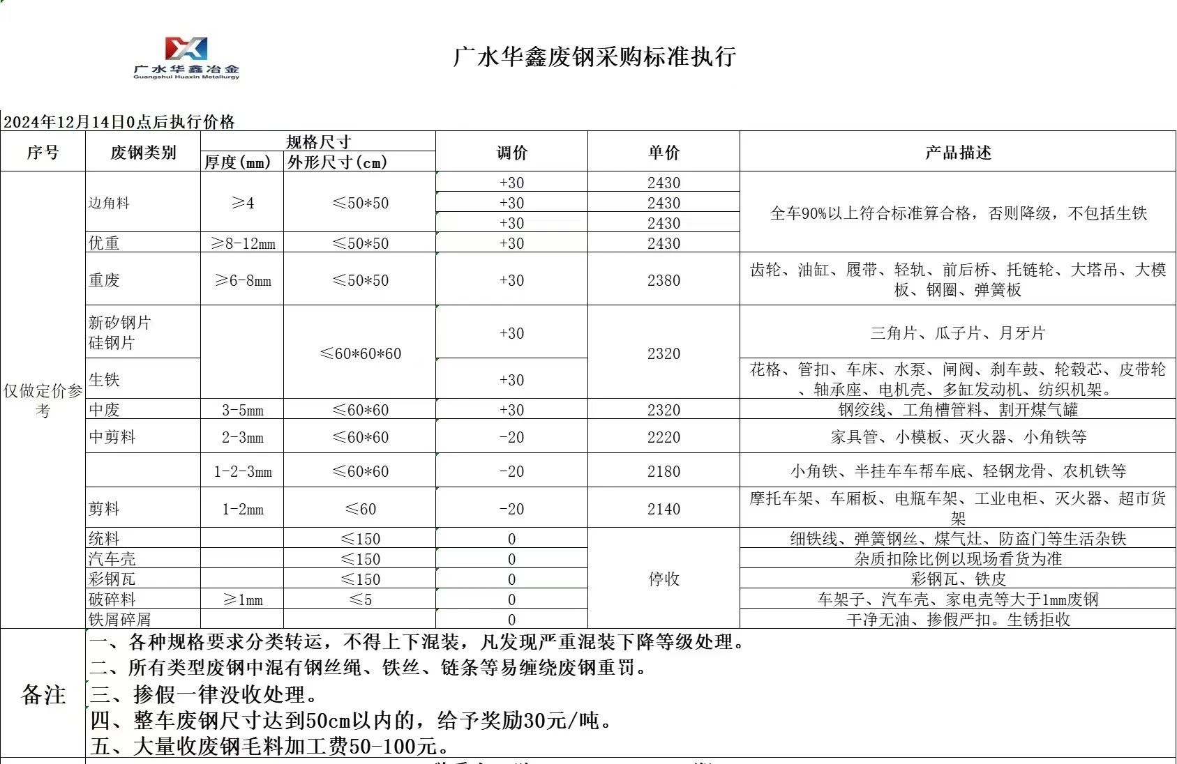湖北广水华鑫废钢最新调整,部分下调**,部分涨**