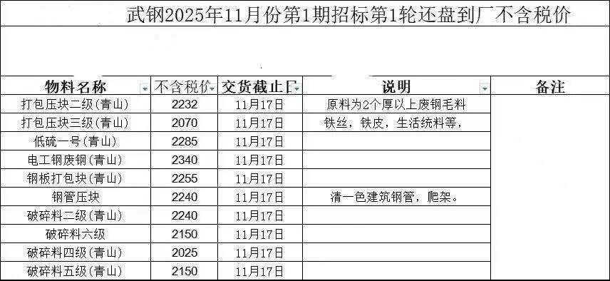 湖北武钢****年**月份第*期招标第*轮还盘到厂不含税价
