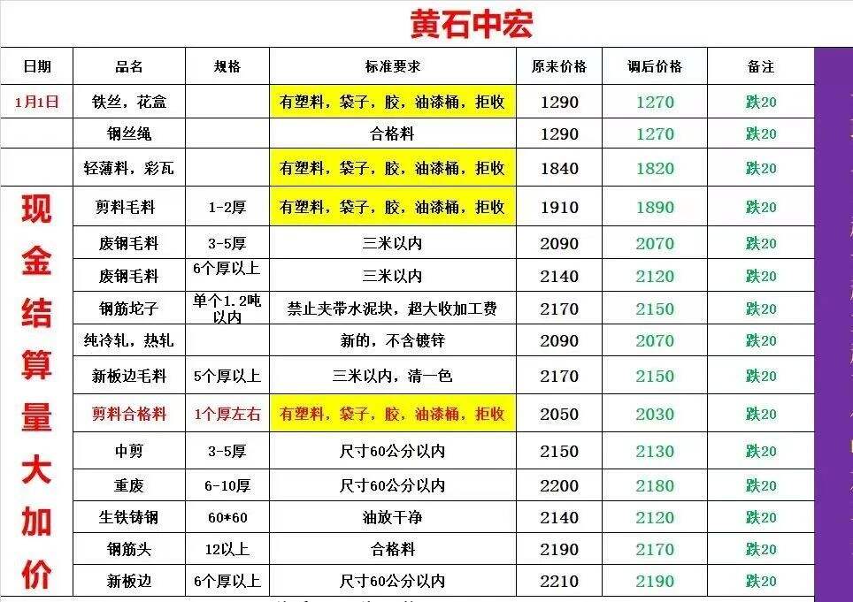 ****年*月*日湖北黄石中宏废钢价格部分跌**