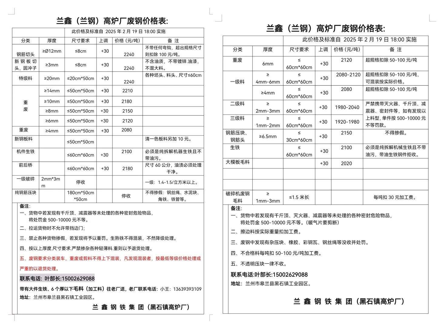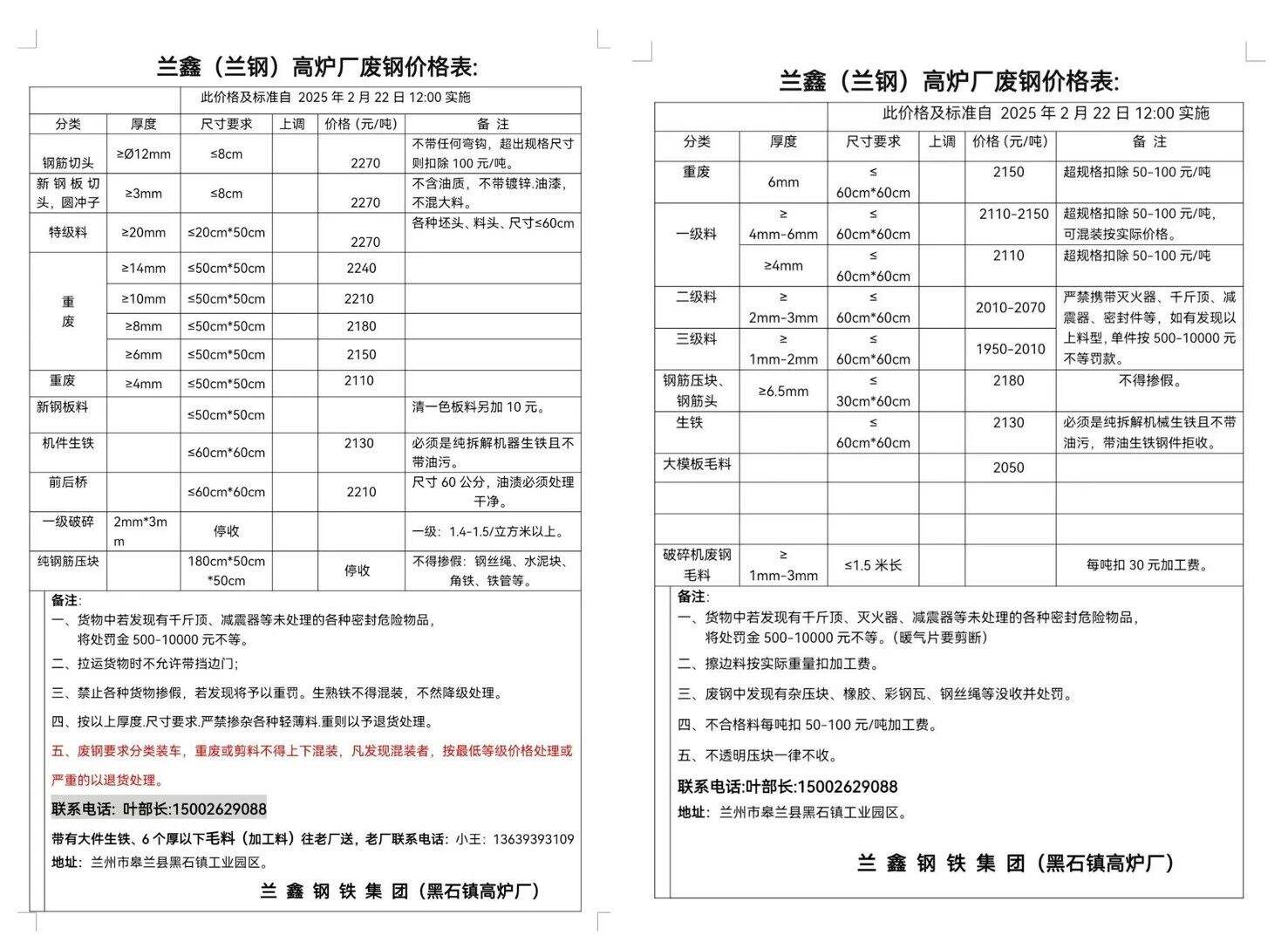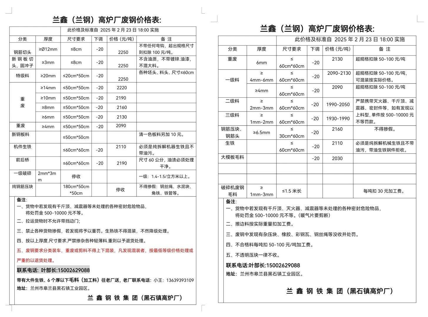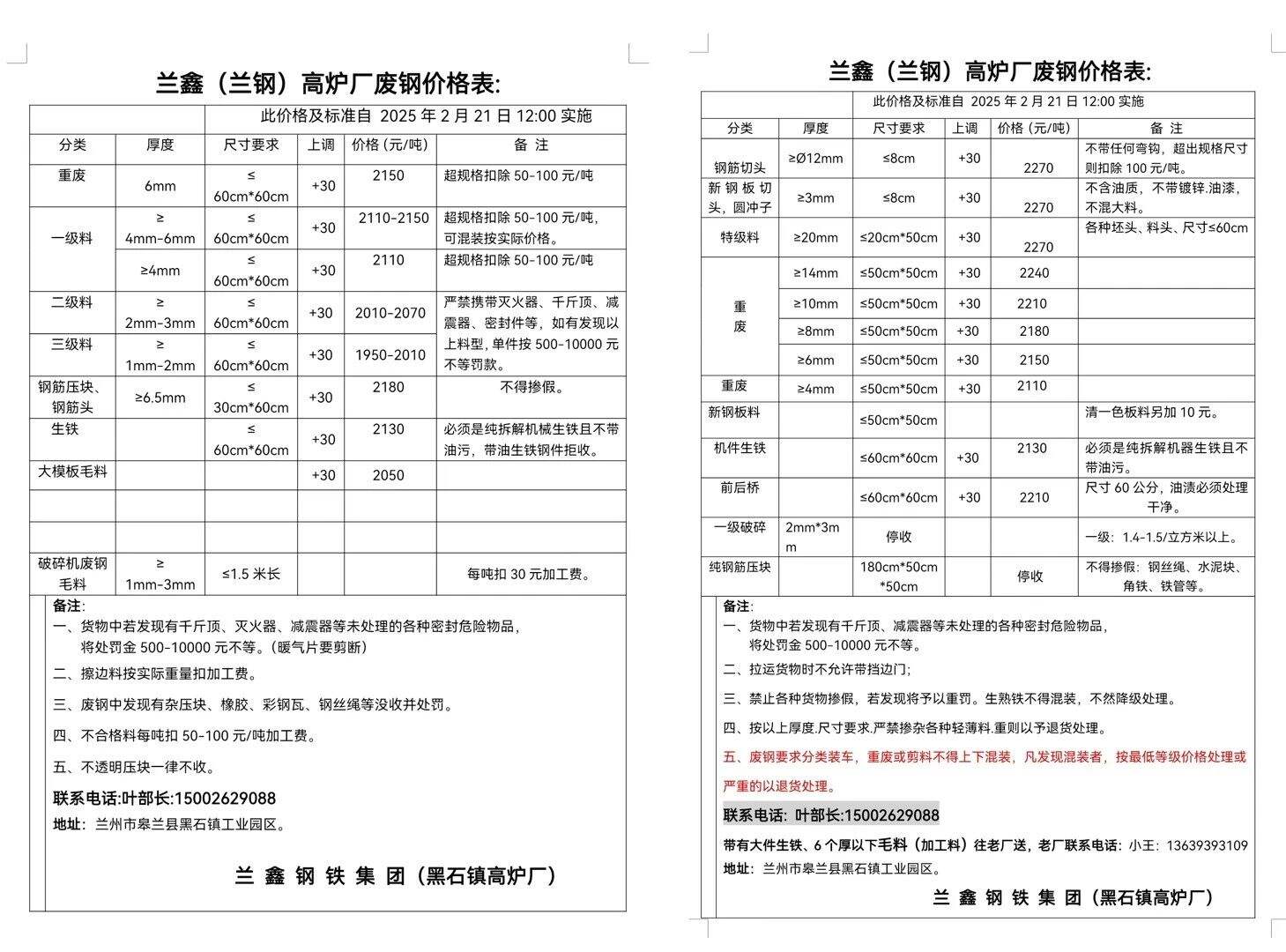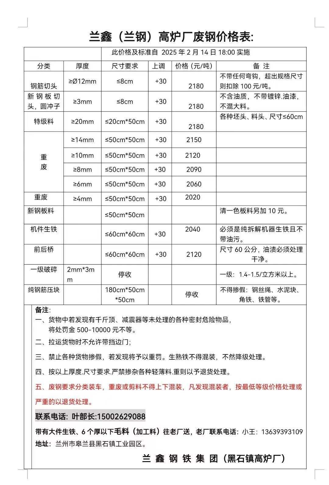 兰鑫通知:高炉厂全面开始收重废、剪料,请相互转告。