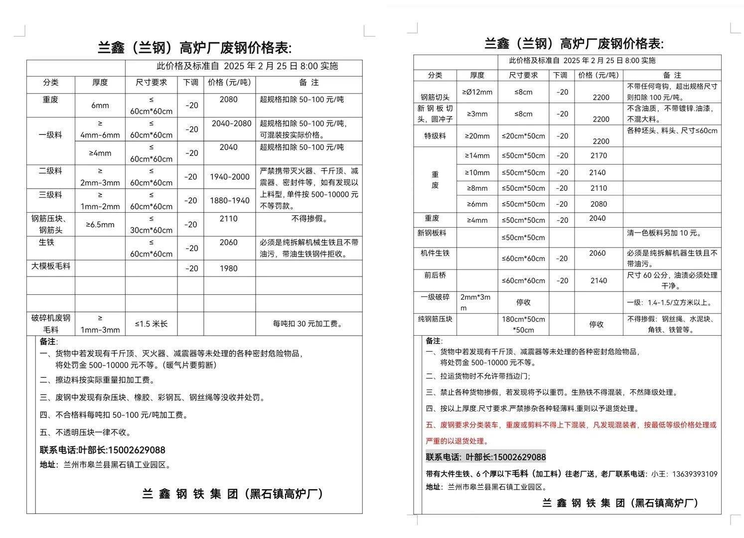 兰鑫*月**日**:**重废价格上调**元/吨。