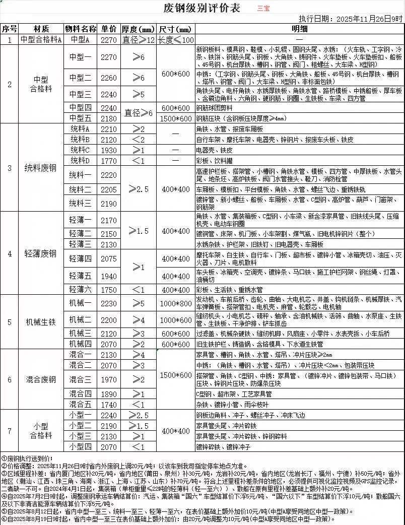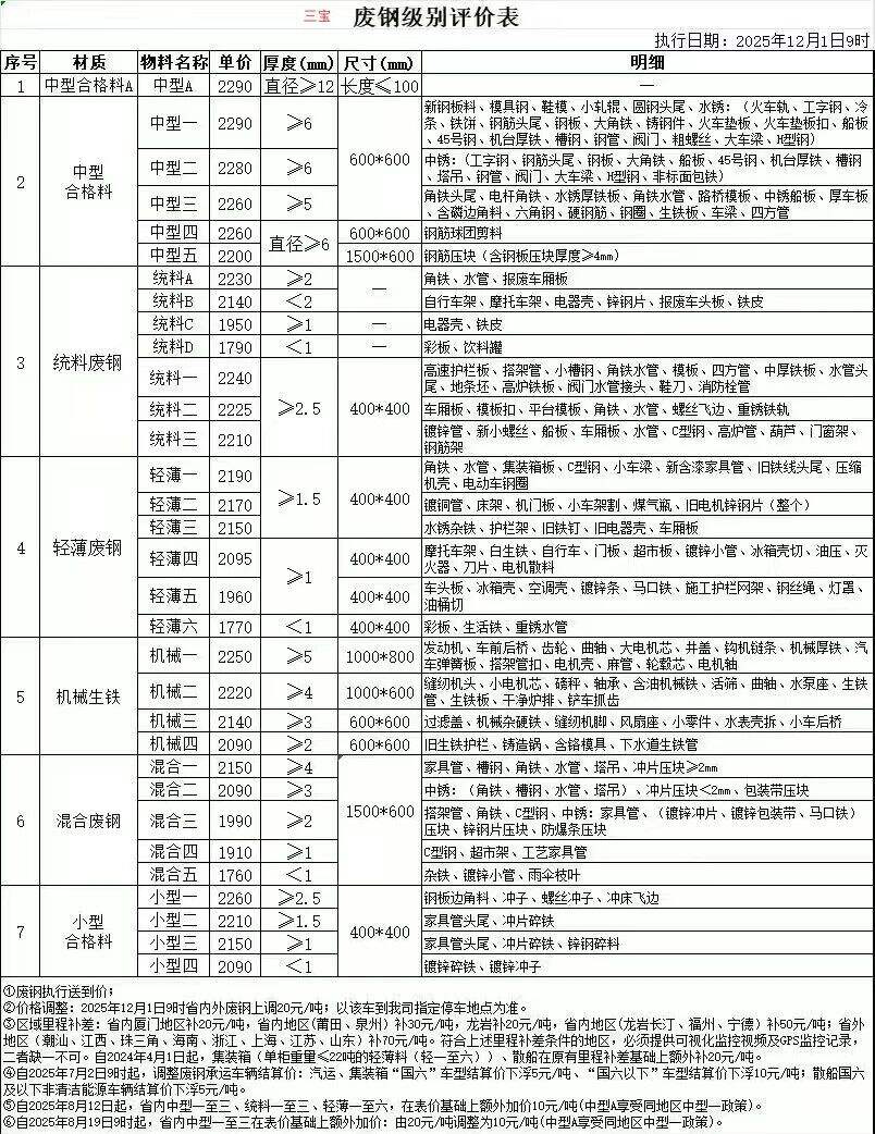 通知尊敬的供应商!****年**月*日*时,福建三宝省内外废钢上调**元/吨,调后重废一基价为****元/吨。