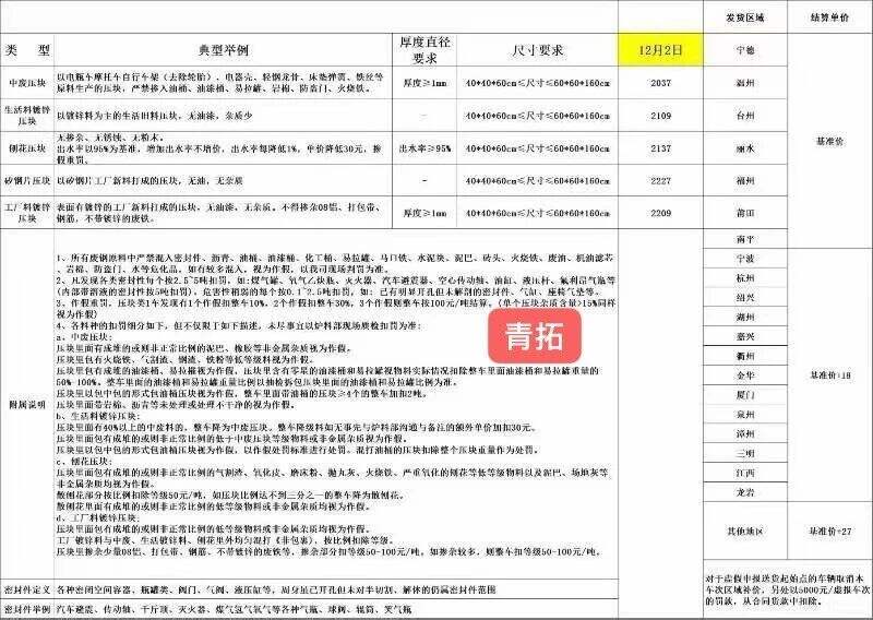青拓通知:****年**月**日所有料型跌**,具体以价目表为准。