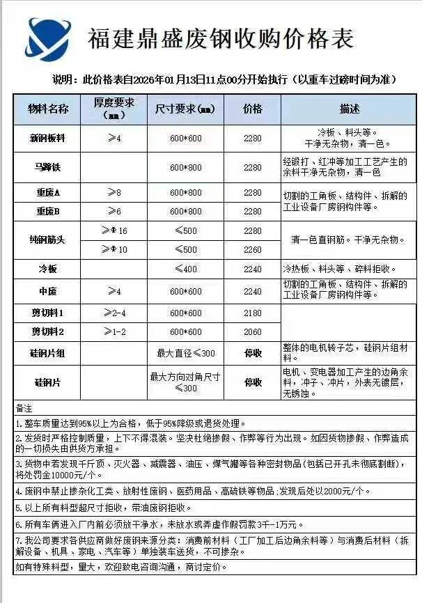 福建龙钢对废钢采购价格下调**元/吨,价格调整从****年*月*日零点开始执行。