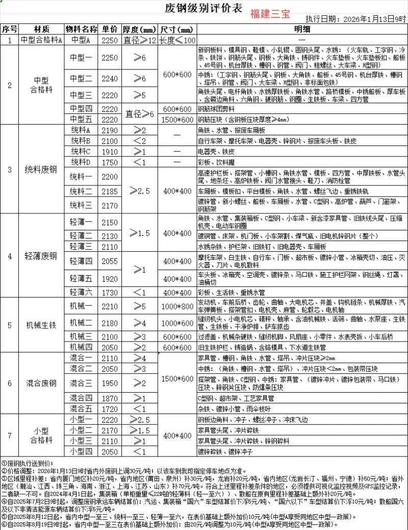 通知尊敬的供应商!****年*月**日*时,福建三宝省内外废钢上调**元/吨,调后重废一基价为****元/吨。