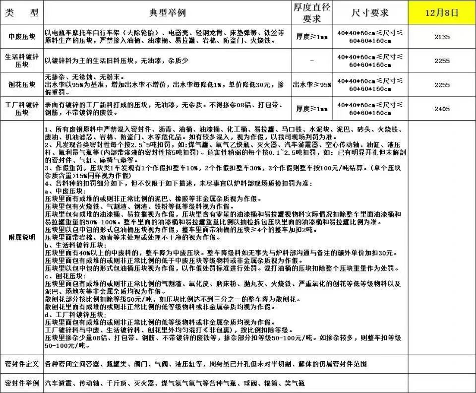 生铁****-****、大件生铁****、优重****、重废****-****、中废****-****、小废****-****、大钢刨****、数控/压块****、普刨****、破碎料****-****