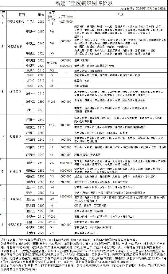 通知,尊敬的供应商!,****年**月*日*时,福建三宝省内外废钢价格平,重废一基价为****元/吨,注,潮汕地区钢筋压块里程补差由原来**元/吨调整为**元/吨