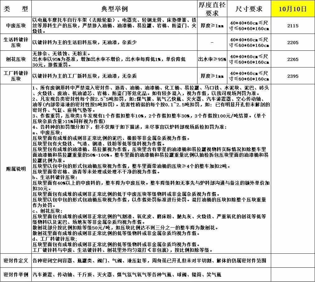 生铁****-****、大件生铁****、优重****、重废****-****、中废****-****、小废****-****、大钢刨****、数控/压块****、普刨****、破碎料****-****