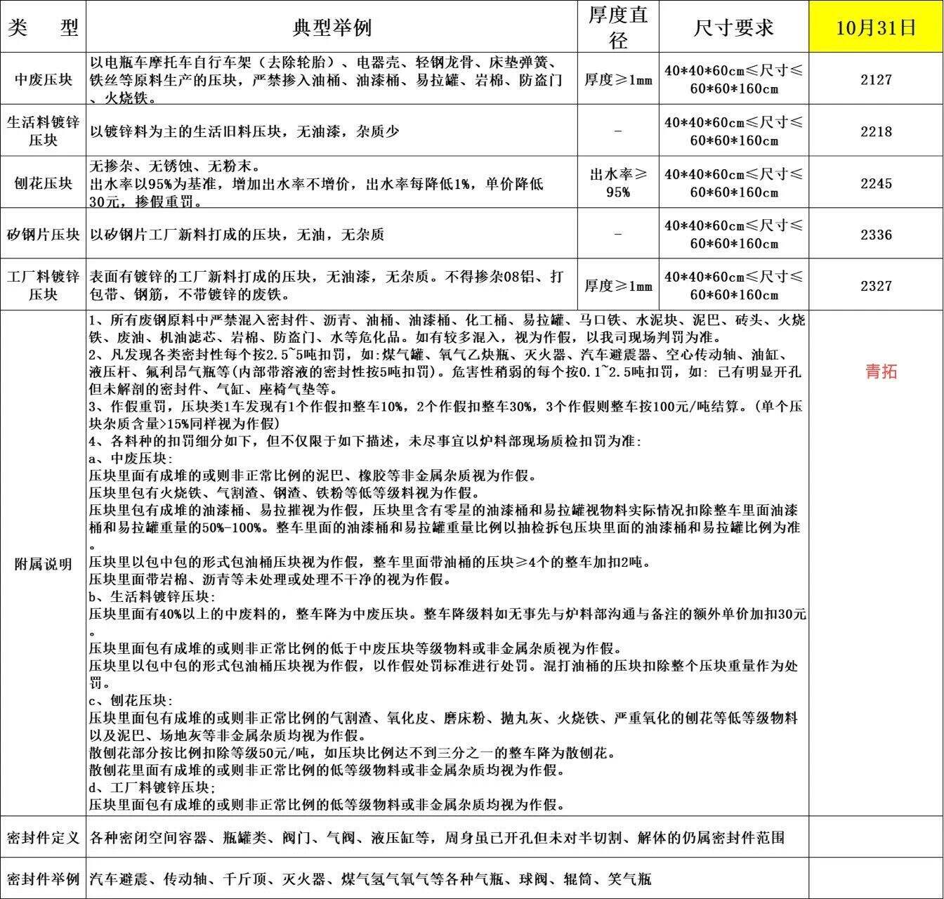 青拓通知:****年**月**日刨花、生活镀锌涨**,其他料型涨**,具体以价目表为准。