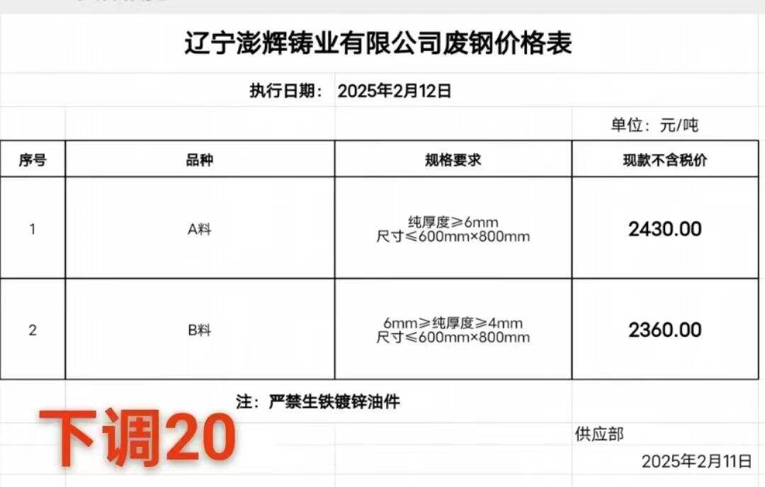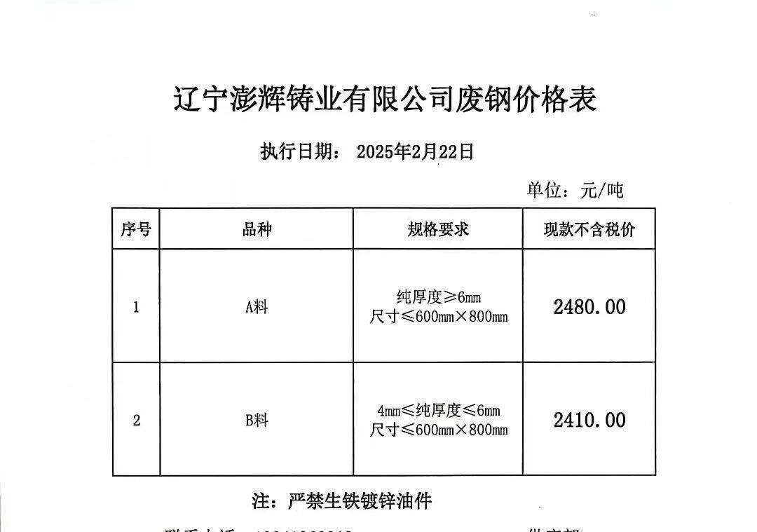 **日辽宁新澎辉废钢跌**,A料****、B料****,不含税