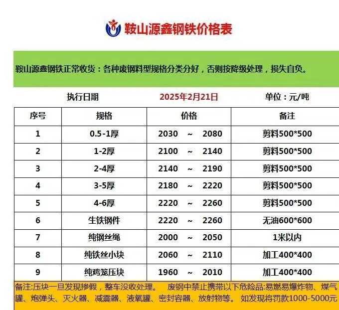 **日鞍山源鑫废钢涨**,*.*-*厚****-****、*-*厚****-****,*-*厚****-****,*-*厚以上****-****,*-*厚****-****,生铁钢件****-****