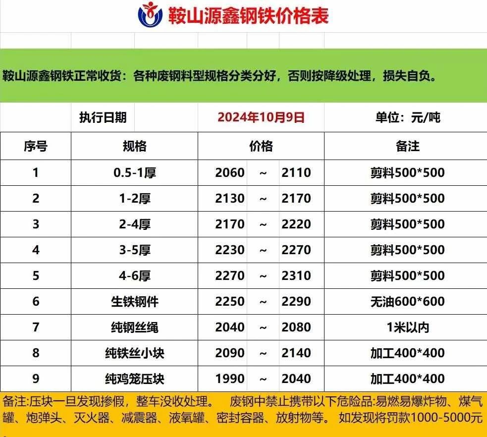 *日宏兴最新:模具钢****,电机轴****,火车轮****,道轨钢****,钢板料一级****,法兰片、弓子板****,新钢件****,马蹄铁****,钢板料二级****,钢板料三级****,优重****,工角槽****,重A****,重B****,重C****,面包生铁****,马蹄铁一级****,马蹄铁二级****,马蹄铁三级****,优碎****,矽钢片****,碎A****,碎B****,碎C****,定子****,新管头****,钢筋切粒一级****,钢筋切粒二级****,滚剪钢筋切粒****,花铁压块一级****,花铁压块二级****,钢筋压块****,边丝压块****,小冷板压块****,小**铝压块****,**铝烤蓝压块****,大钢刨****-****,小钢刨****-****,普销一级****-****,普销二级****-****