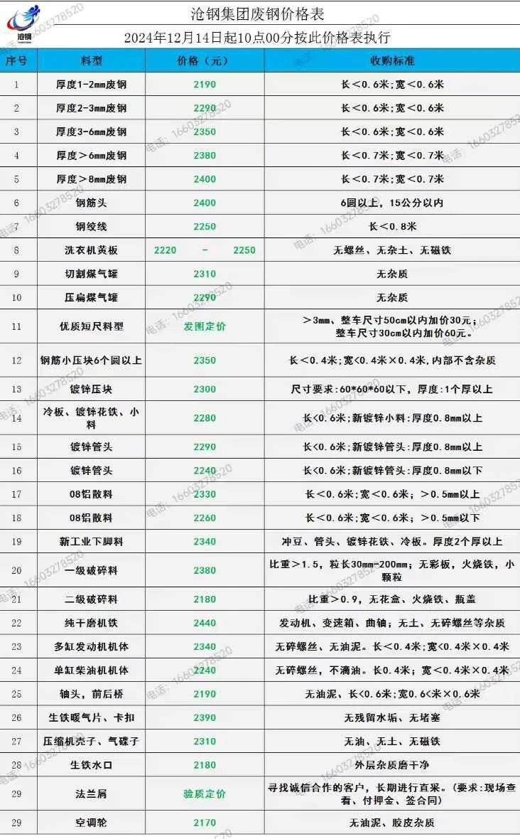 沧钢通知:****年**月**日**:**起废钢价格下调**元**日沧钢三和最新,*-*厚****,*-*厚废钢****,*-*厚废钢****,*厚废钢****,*厚****,钢筋头****,一级破碎料****,二级破碎料****,生铁暖气片****,生铁水口****,不含税
