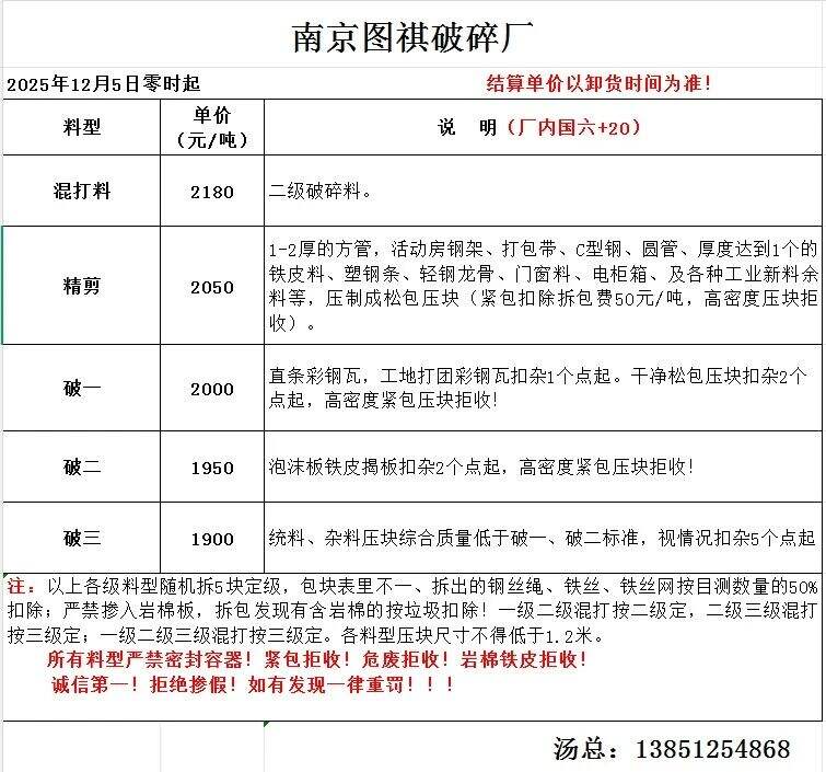 所有料型严禁密封容器!紧包拒收!危废拒收!岩棉铁皮拒收!