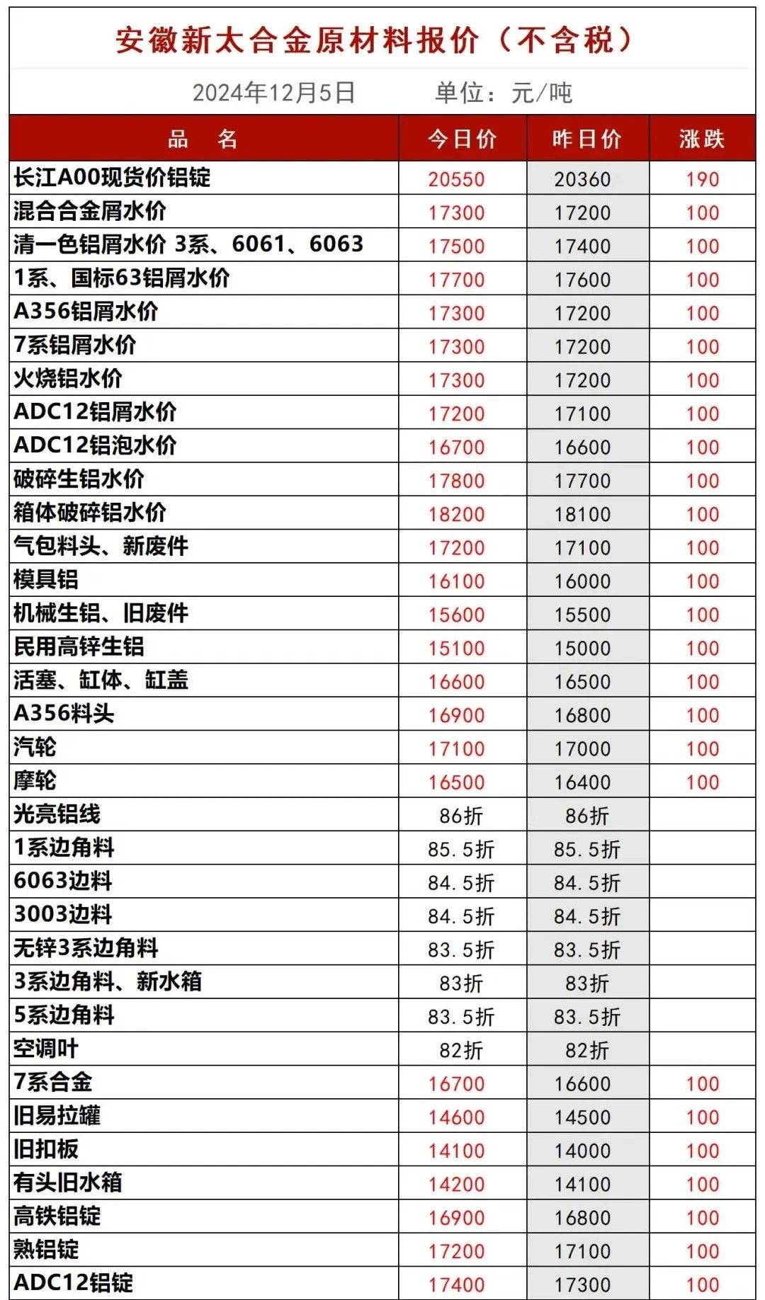 ****年**月*日顺博铝合金湖北有限公司最新价格