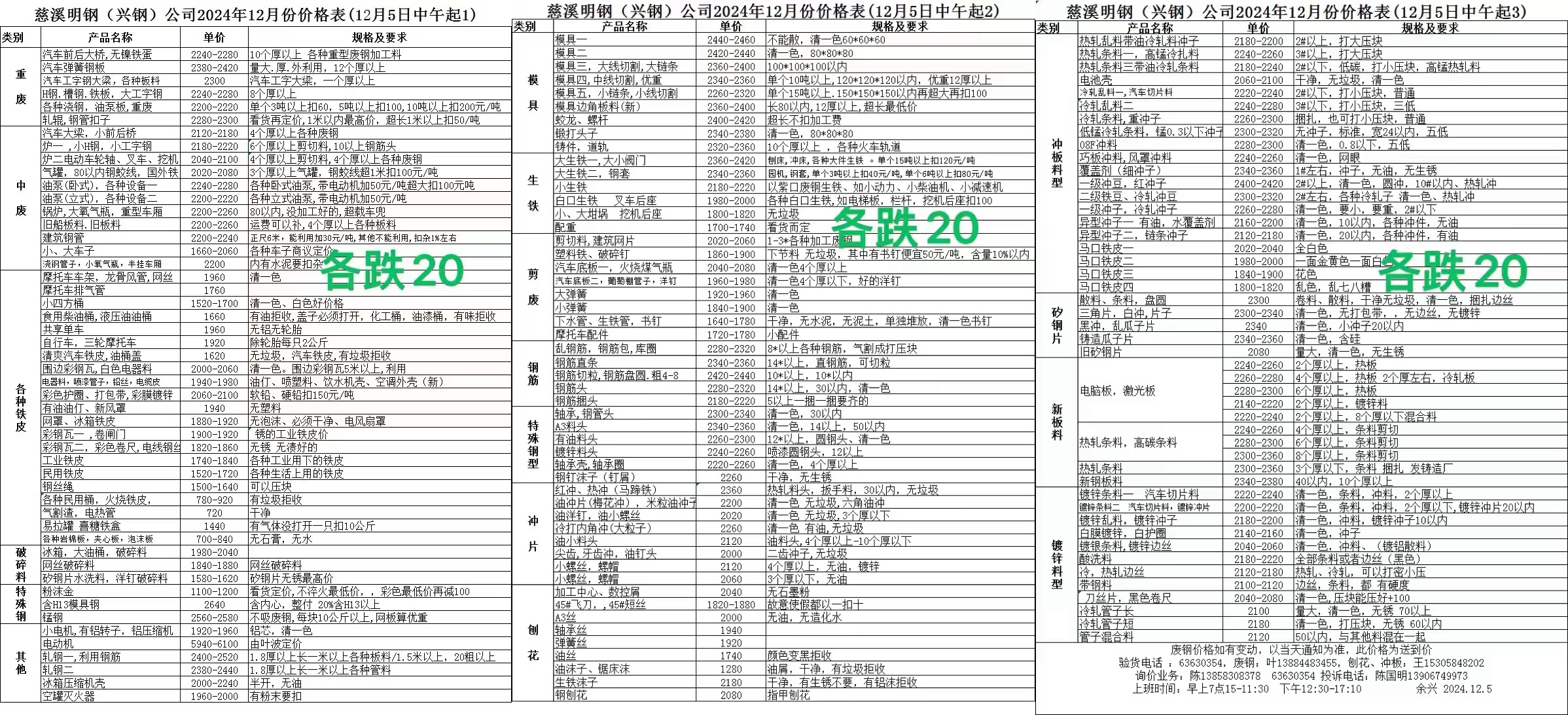 **月*日宁波兴钢废钢跌**,有三个价格表