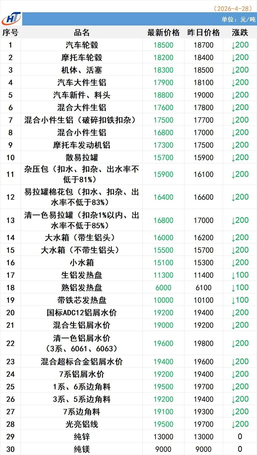 2026年4月28日湖南宏拓铝业有限公司最新报价